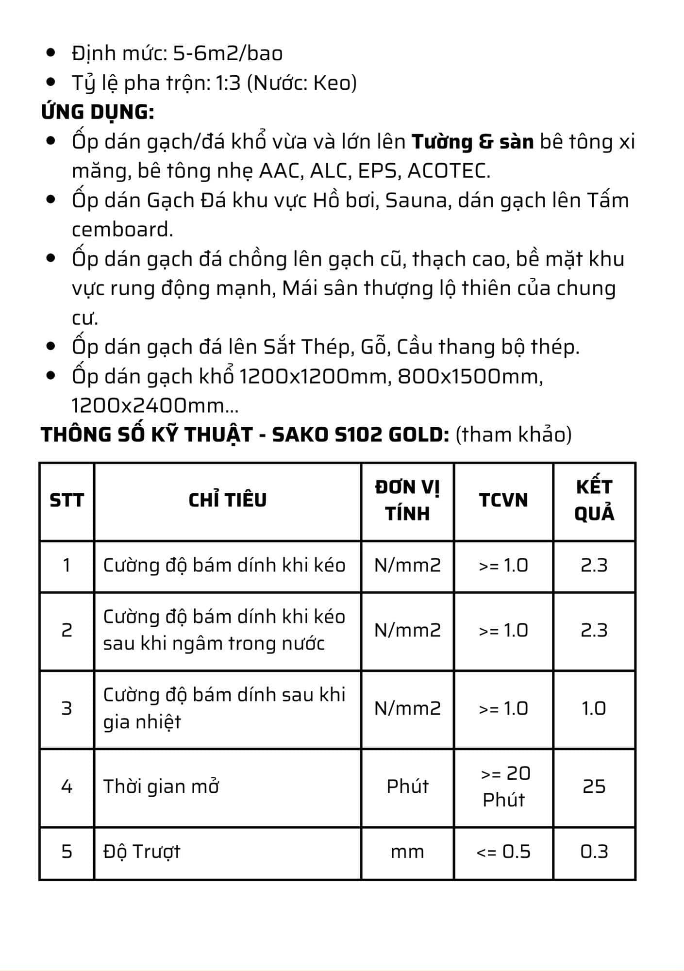 Giá keo dán gạch SAKO S102 Gold – Cập nhật mới